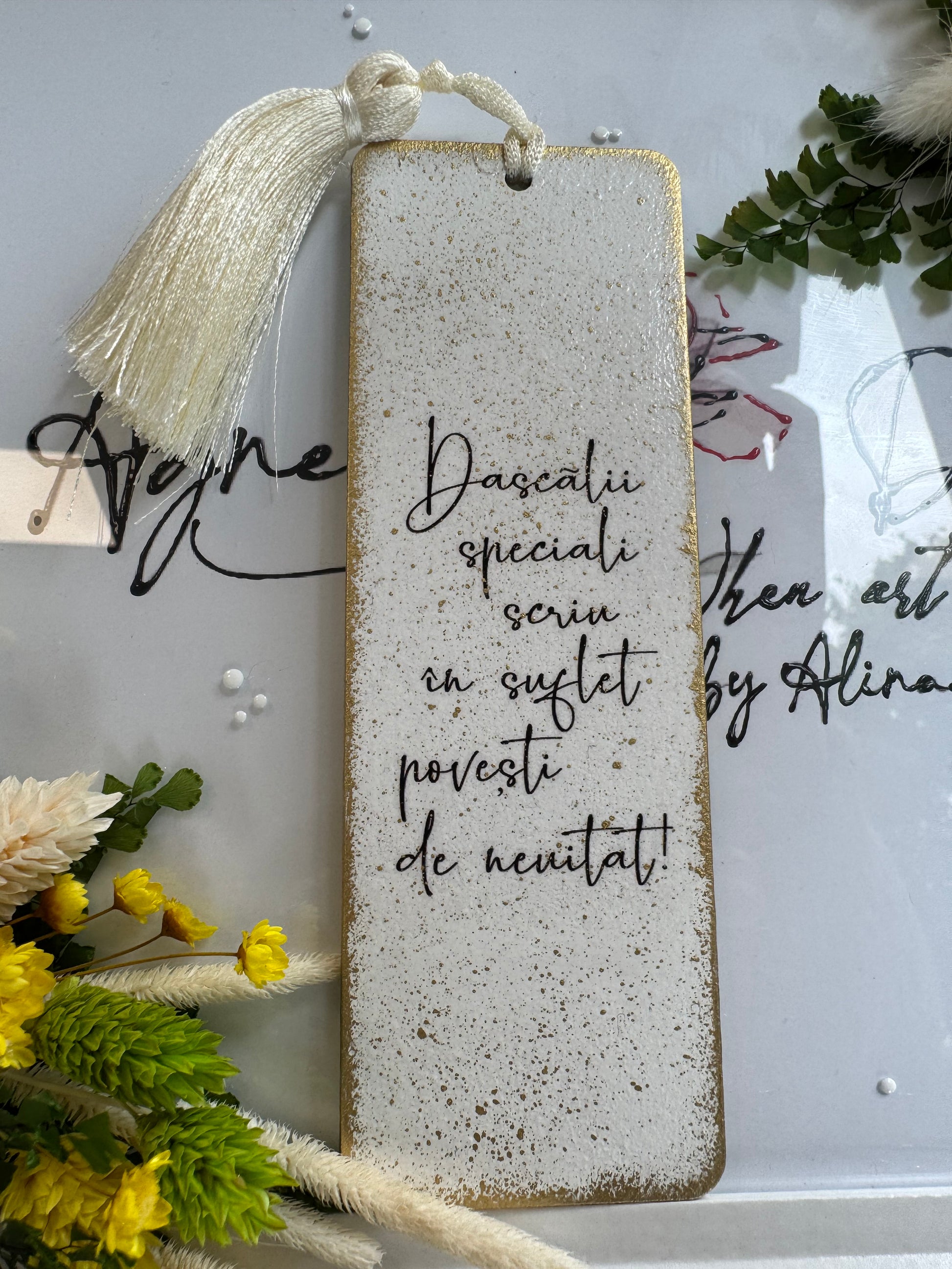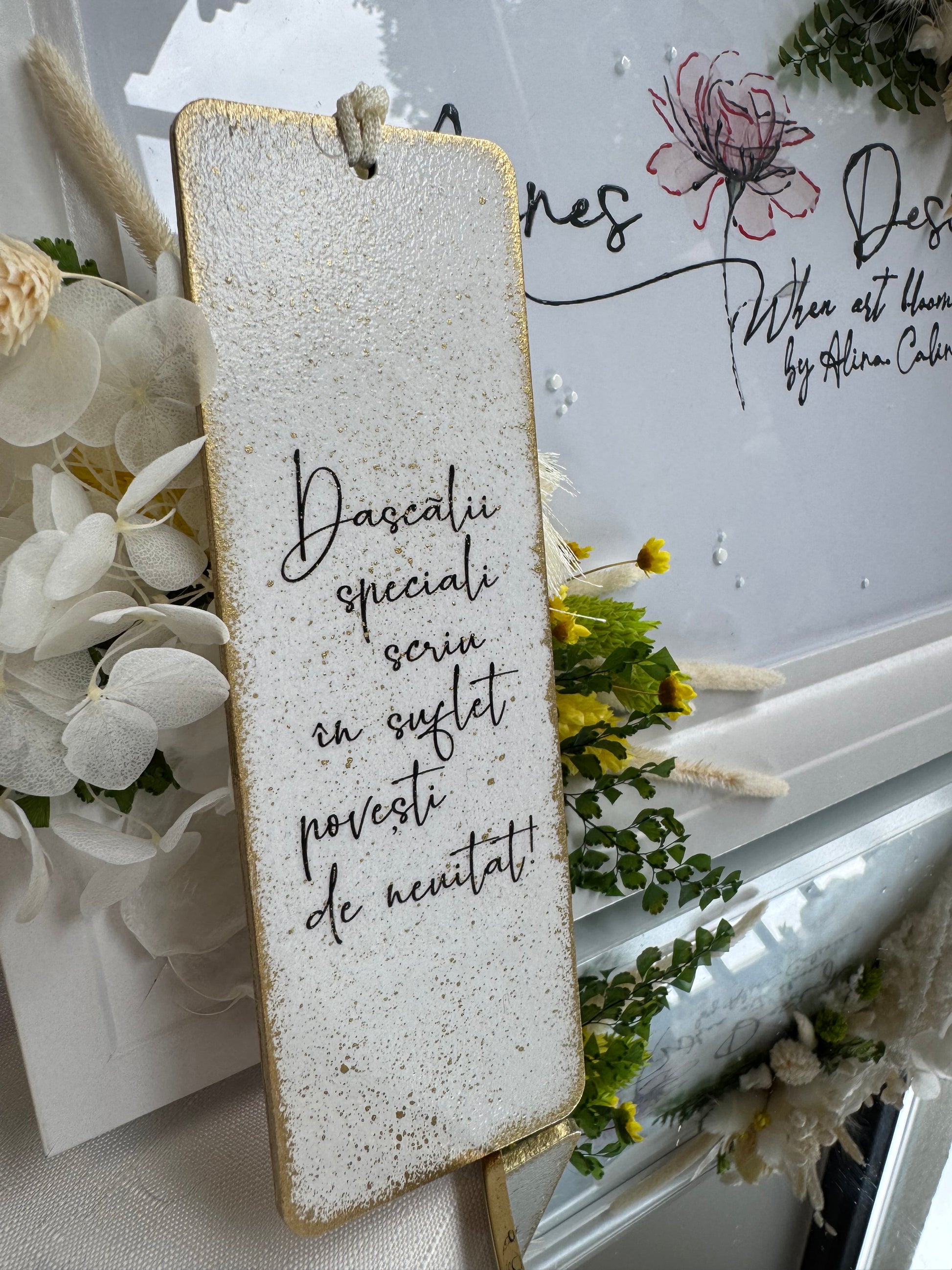 Un gest mic cu o semnificație mare – acest semn de carte lucrat manual este creat cu gândul la cadrele didactice care ne inspiră, ne ghidează și ne oferă darul cunoașterii. Realizat cu grijă și atenție la detalii, fiecare semn de carte poartă un mesaj cald de recunoștință, menit să aducă un zâmbet și să transmită aprecierea sinceră pentru un an de învățare și dăruire.