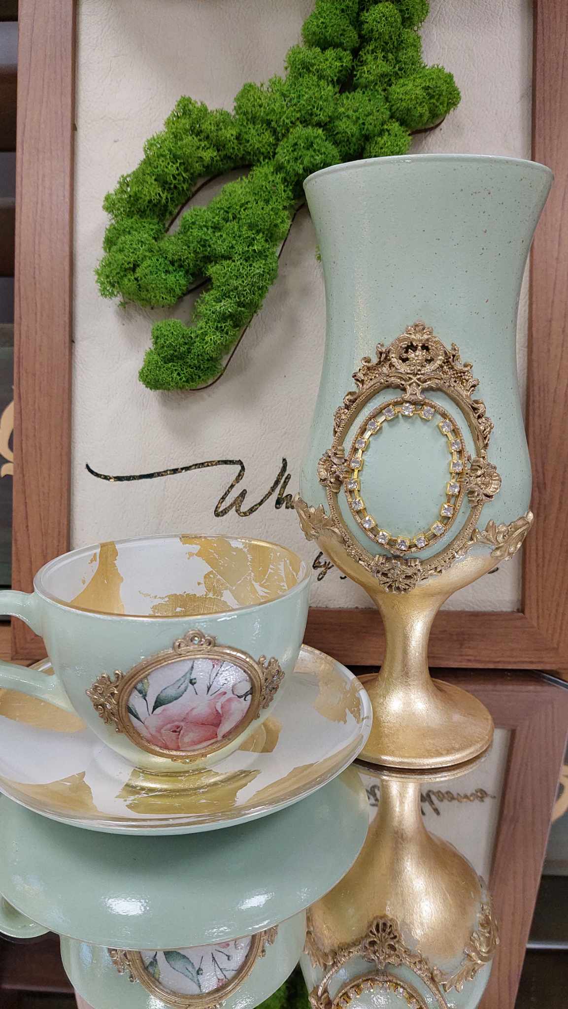 - minivază decoratî în același ton, accesorizată cu strasuri și ramă baroc lucrată manual, perfectă pentru flori mici.